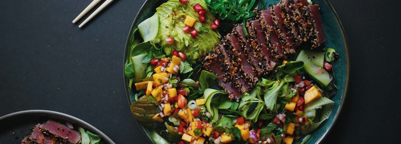 De lune sommeraftner kalder på farvestrålende mad. Imponér dine gæster med asiatisk marineret lynstegt tun, grøn salat og mangosalsa. Spis retten som et hovedmåltid eller halvér den og nyd den som en dejlig forret.