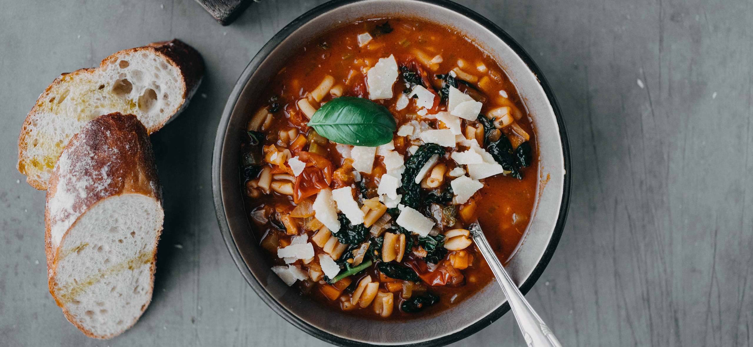 Man går sjældent galt i byen med en god italiensk minestrone suppe. En minestrone består af gode råvarer og kan varieres i det uendelige, så længe du har styr på basen. Her kommer Salling Supers bud på en god minestrone suppe med lækkert pancetta og masser af grøntsager. Suppen kan sagtens serveres for gæster med et godt glas rødvin og godt brød, som du vender i lidt olivenolie og frisk hvidløg, hvorefter det bages sprødt i ovnen.