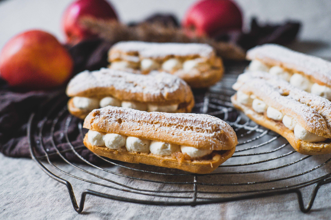 Vandbakkelser med æble og græsk yoghurt skum