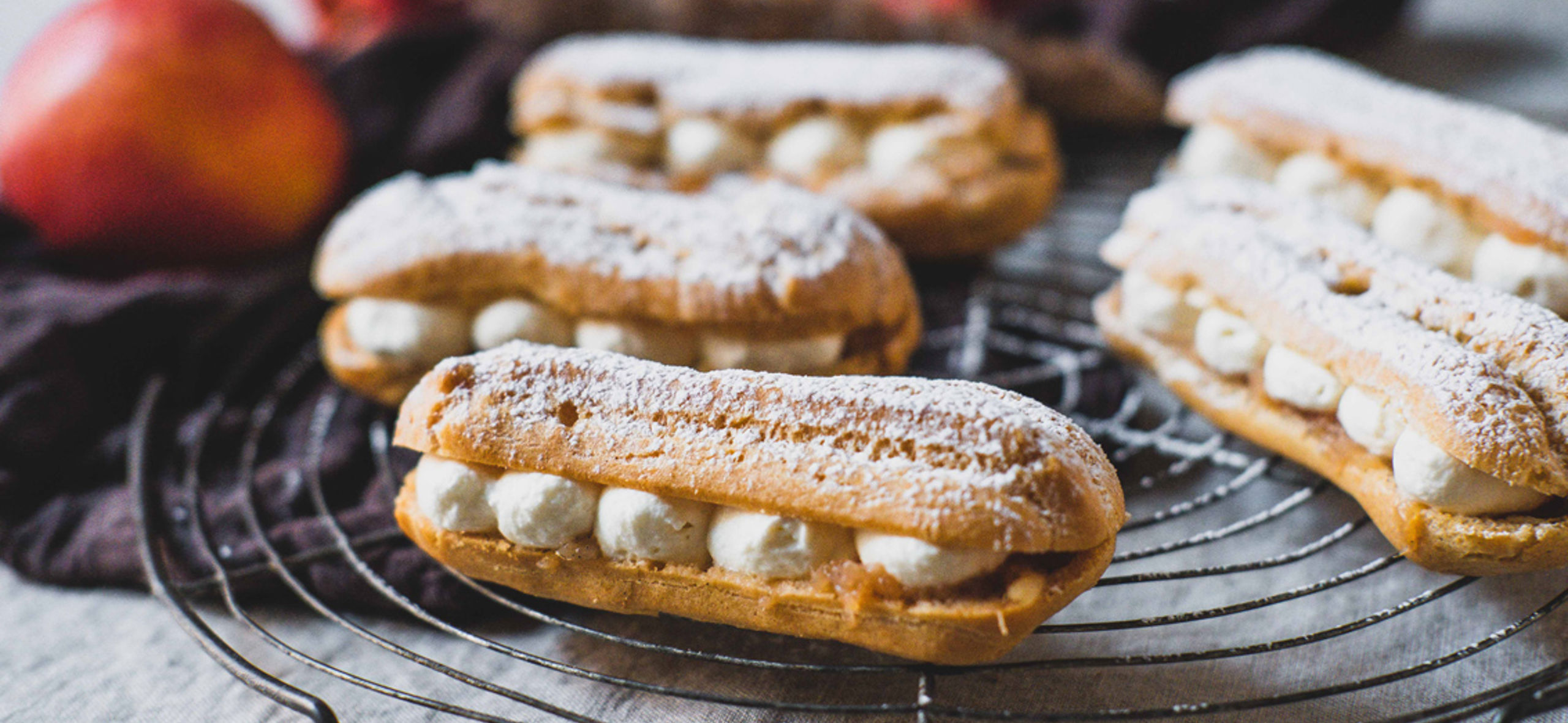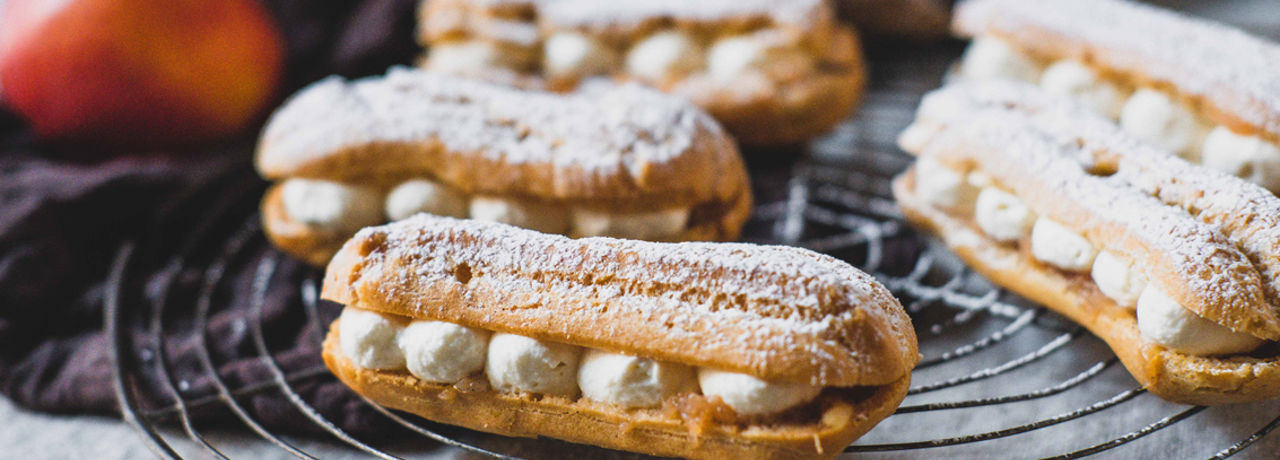 Hvem elsker ikke en god gammeldags æblekage? I Salling Super elsker vi at variere traditionelle retter. I denne omgang har vi fyldt bløde vandbakkelser med en syrlig-sød æblegrød og en cremet lækker flødeskum vendt sammen med græsk yoghurt og honning. Det giver en lækker lidt mere fast skum og et syrligt twist.