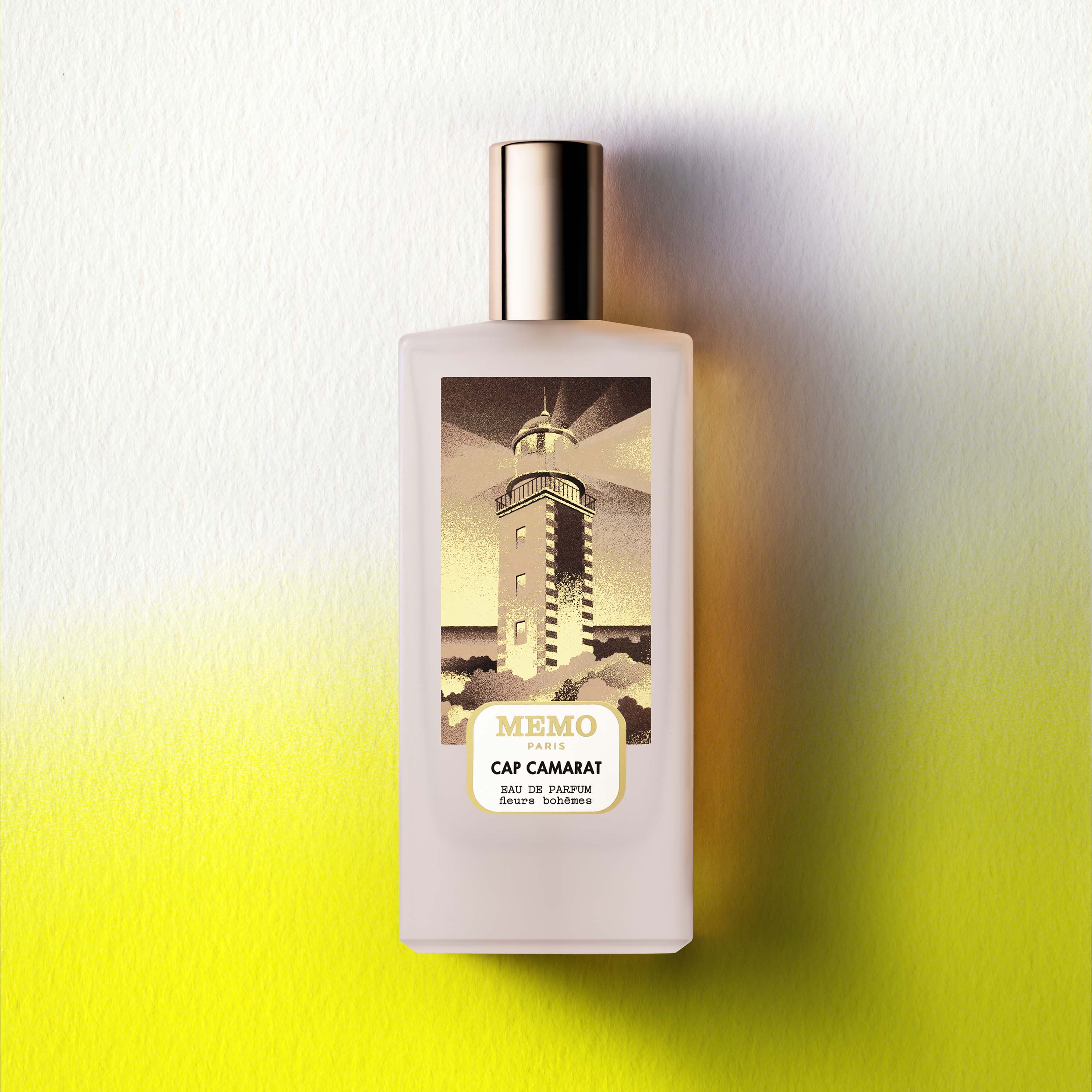 Memo Paris Cap Camarat Eau de Parfum er en luxury unisex niche fragrance med pink peber og frugt i toppen, jasmin sambac og ylang ylang i hjertet samt vanilje, sandeltræ, amyris, patchouli og labdanum i basen.