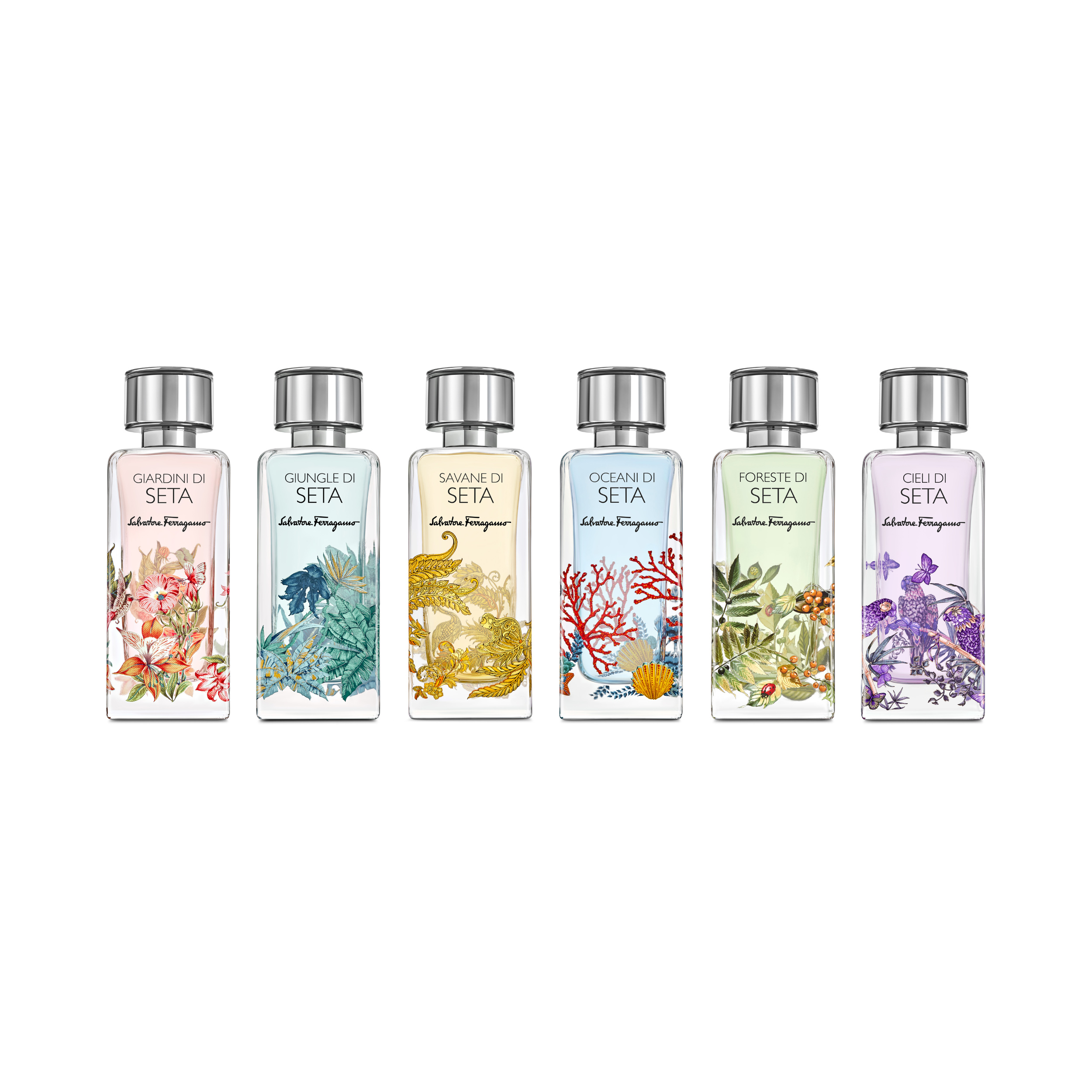 Flakonen, udsmykket med Ferragamos tekstilmotiver og indhyllet i violette toner, er et kunstværk i sig selv. Dette design balancerer mellem tradition og modernitet og gør flasken til et raffineret indslag i enhver duftsamling.