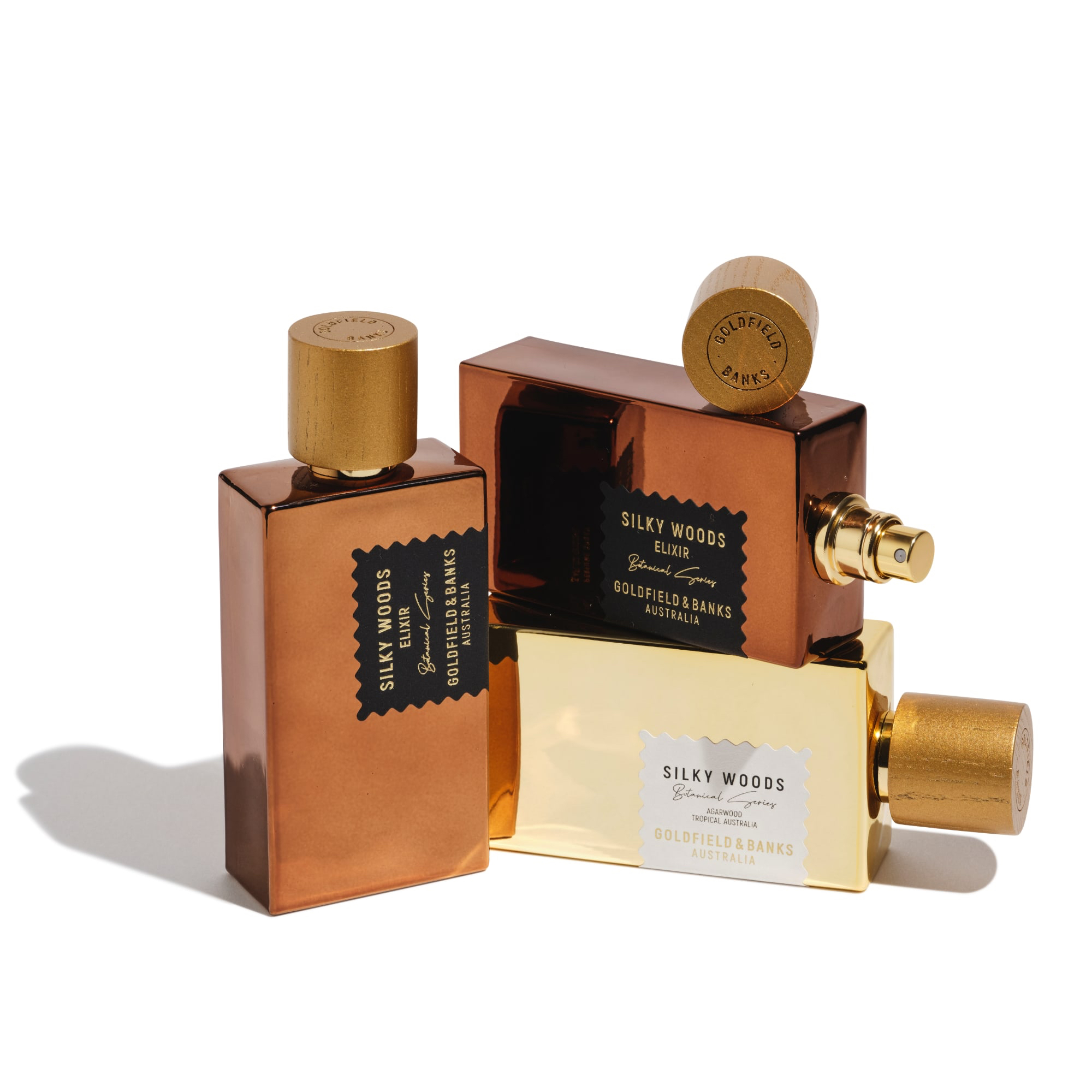 Silky Woods Elixir åbner sig med et væld af grønne aromaer, der er lige så grønne som baldakinerne i de agartrælunde, hvor essensen er født. En overdosis af den hypnotiske essens af australsk agartræ fra verdens ældste regnskov blomstrer, intensiverer dybden af kompositionen og maler den i rige nuancer af rødbrunt og guld, mens den forstærkes af frodige solmodne figner og figenbladenes jordagtige sprødhed.