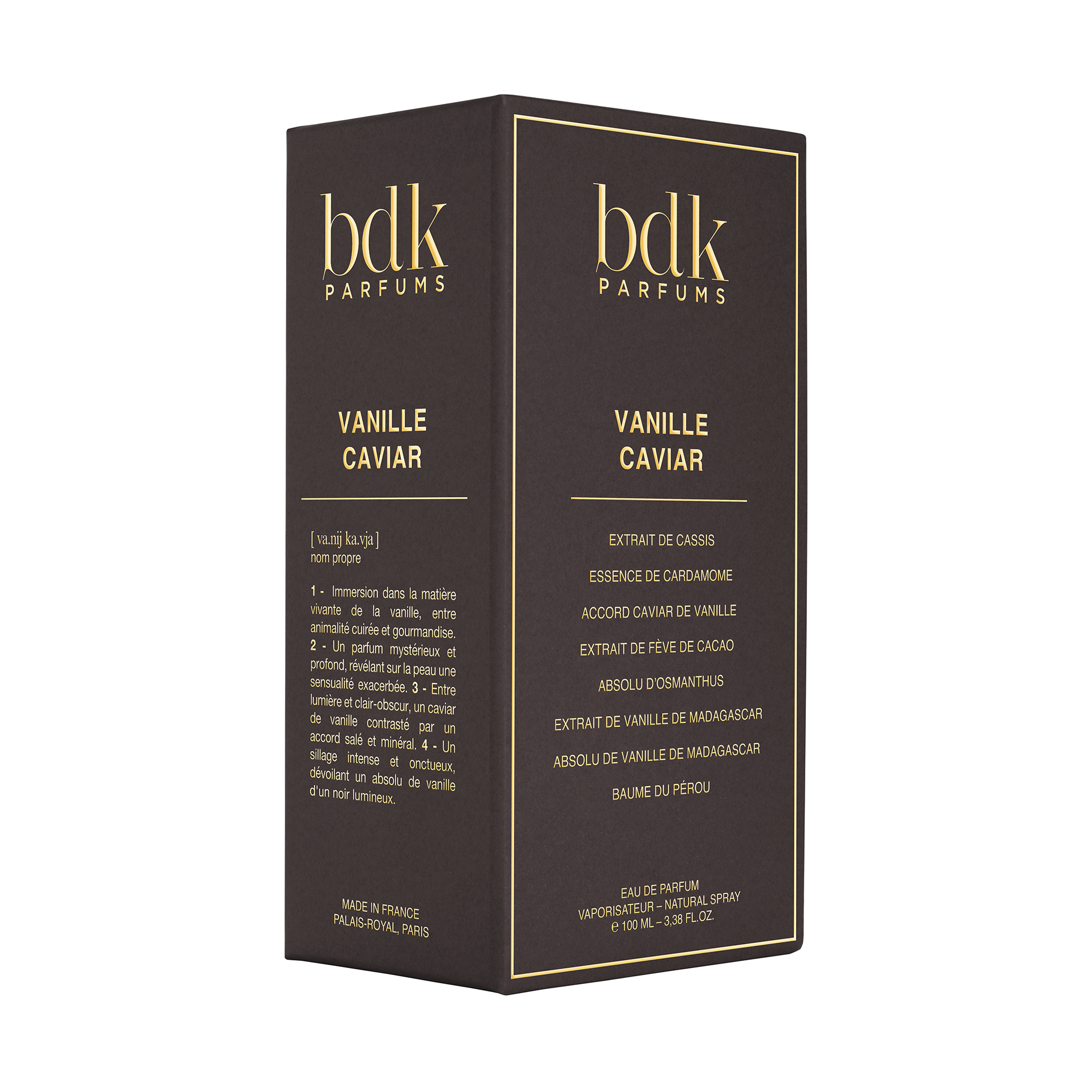 Vanille Caviar Eau De Parfum fra BDK Parfums er en udsøgt duftoplevelse, der indfanger essensen af luksus. Denne parfum åbner med forførende topnoter af solbærknop og krydret kardemomme, som straks vækker sanserne og efterlader et varigt indtryk. I hjertet af duften finder vi en rig, fyldig vanilje, der tilfører en varm og indbydende sødme, som er både betagende og dyb.