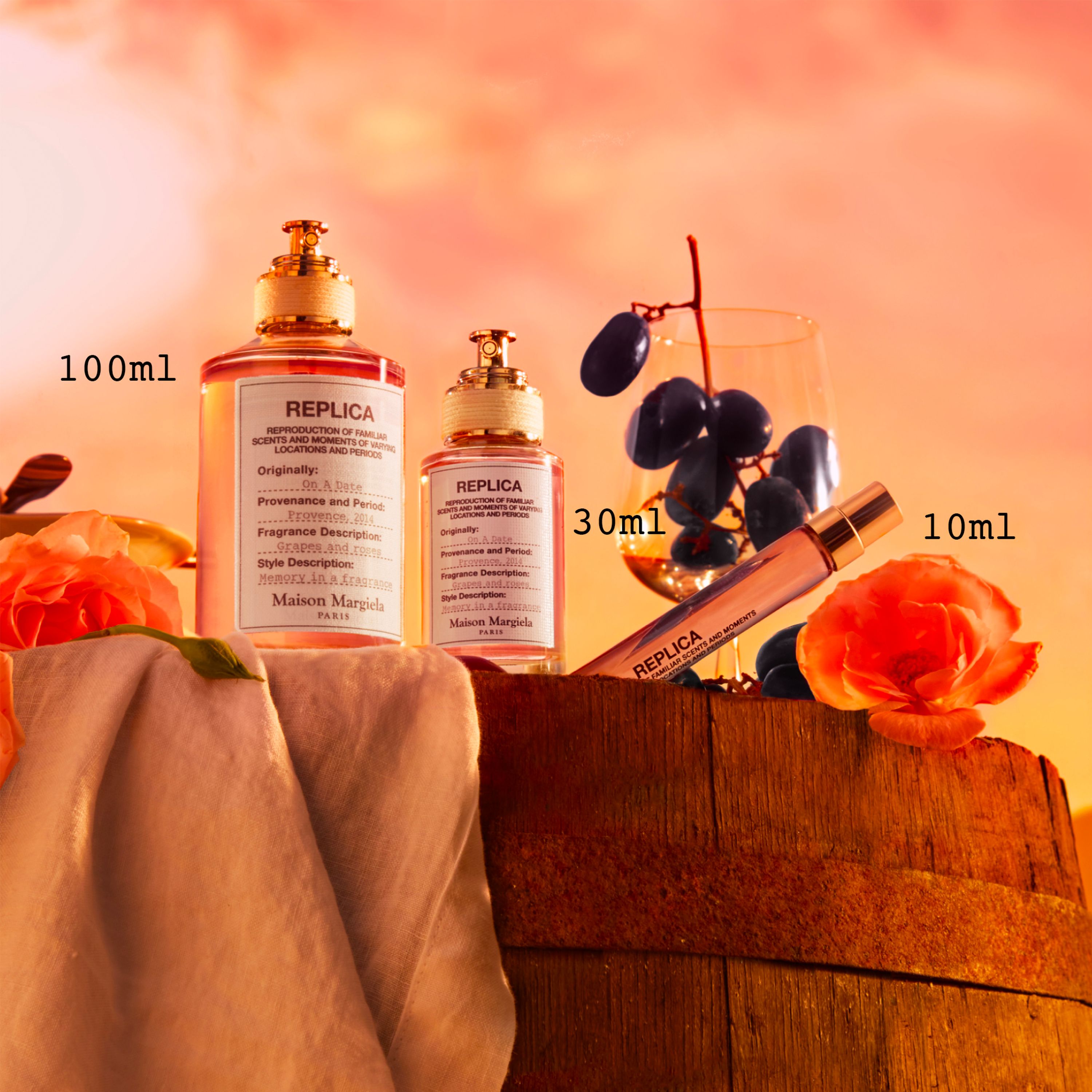 On A Date er en spændende duft inspireret af et magisk stævnemøde en sensommeraften med udsigt over Provences storslåede vinmarker ved solnedgang. Den indfanger den sprudlende og vanedannende frugtighed fra modne druer, der er gennemvædet af varmt solskin, og de vilde rosers delikate og alligevel beslutsomme karakter. Denne parfume vækker sanserne med unikke og dybe minder om stævnemøder og forelskelse.