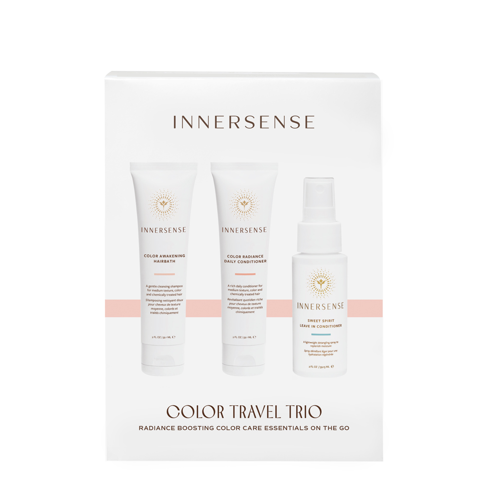 Innersense præsenterer deres eksklusive Color Travel Trio Gaveæske, som er den perfekte gave til enhver, der ønsker at pleje sit farvede hår, selv når de er på farten. Denne gaveæske indeholder tre nøje udvalgte produkter, der hver især bidrager til at opretholde og forbedre hårets sundhed og farve.
