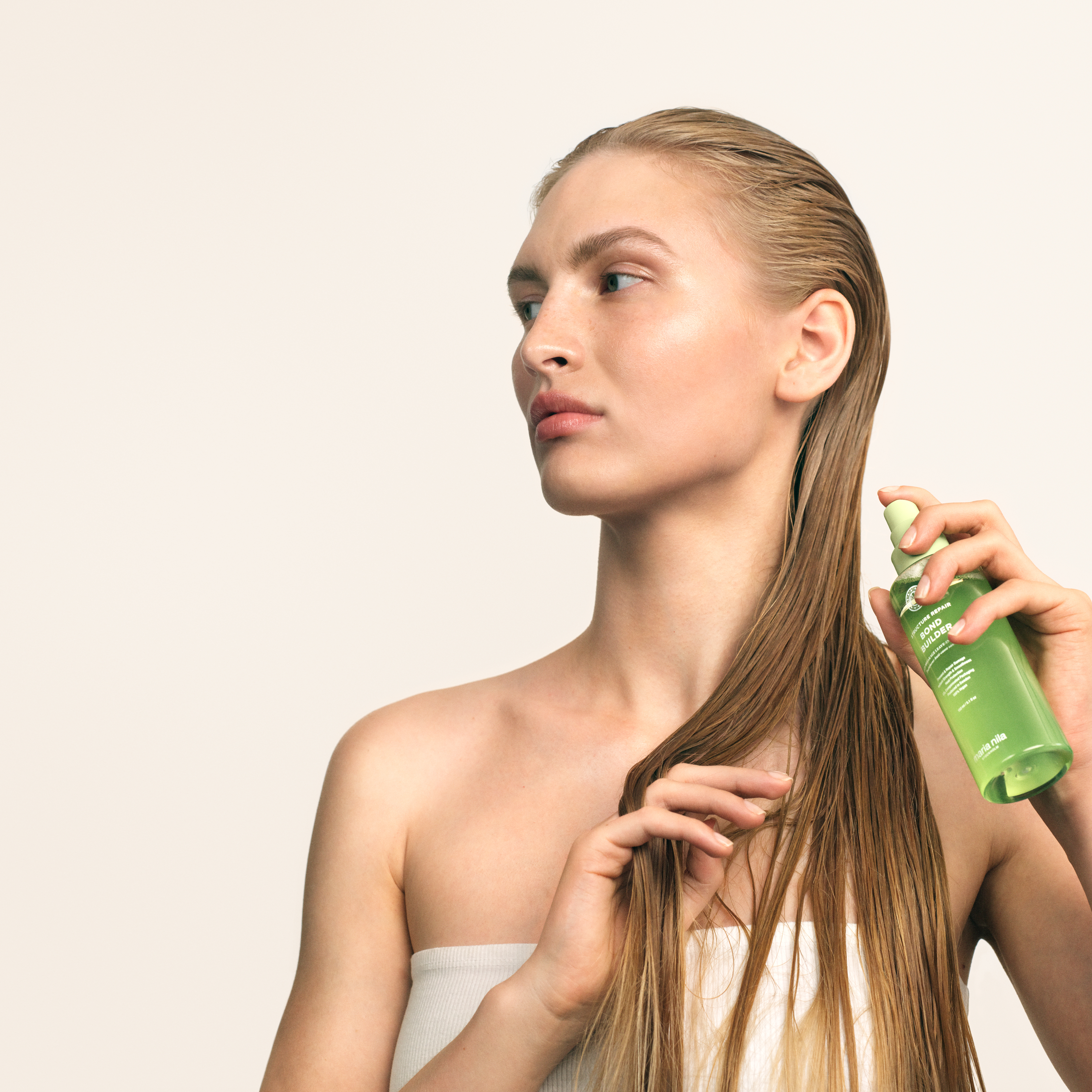 Bond Builder fra Maria Nila er en innovativ leave-in treatment, der er designet til at beskytte og reparere dit hår. Denne behandling er ideel for dem, der ønsker at styrke og blødgøre deres hår, samtidig med at det beskyttes mod skadelige miljøpåvirkninger. En af de største fordele ved Bond Builder er dens evne til at fungere som en varmbeskyttende behandling, der kan modstå op til 230 grader, hvilket gør den perfekt til brug før styling med varmeværktøjer.