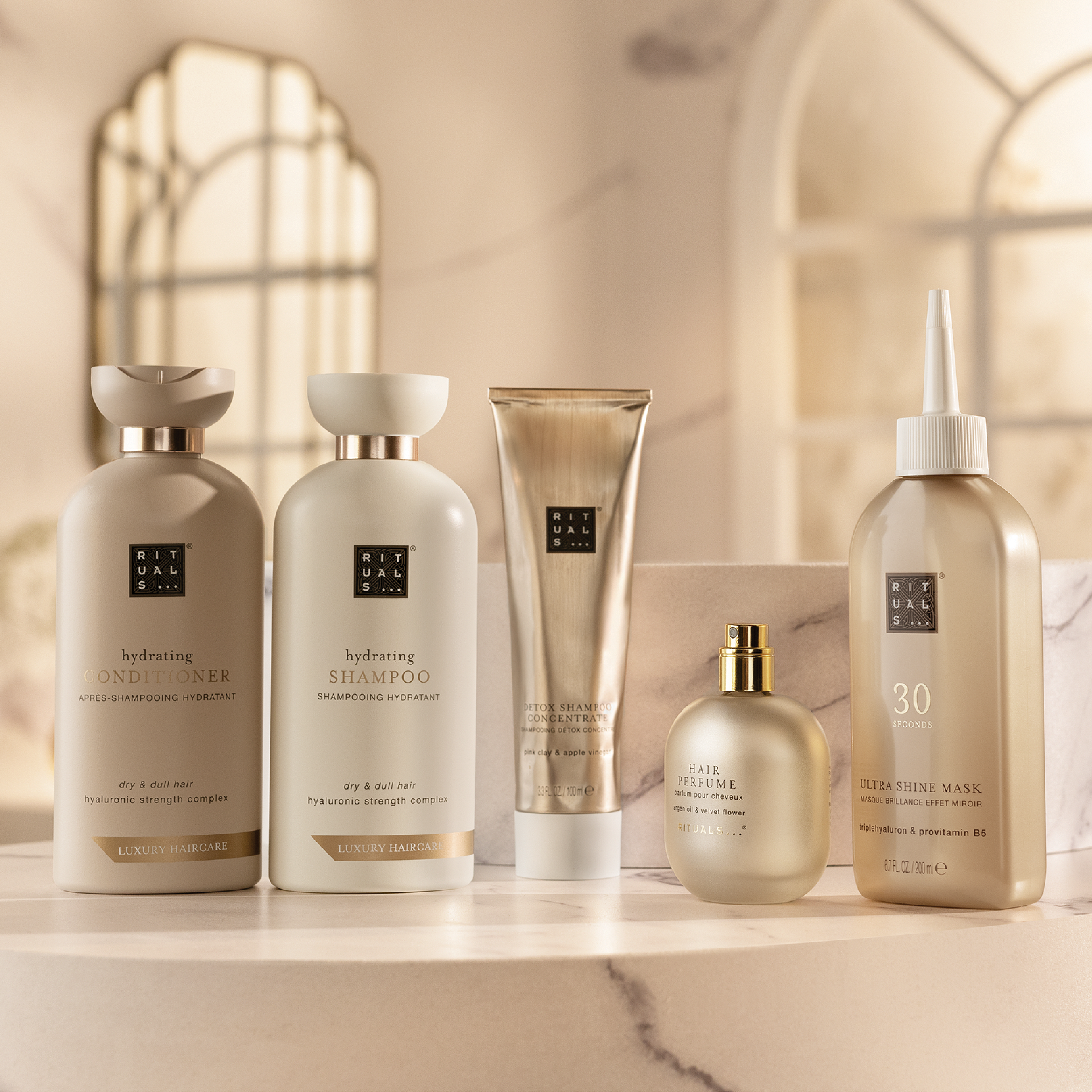 Denne 30 sekunders ultra-glansmaske bliver hurtigt det, dit hår har drømt om – ligesom at være i spa. Det er en ultralet, flydende maske med geltekstur, som er nem at påføre og skylle af. Tilsat tredobbelt hyaluron, provitamin B5 og beroligende plantesukker for intens fugtpleje, øget blødhed og krusfrit hår.