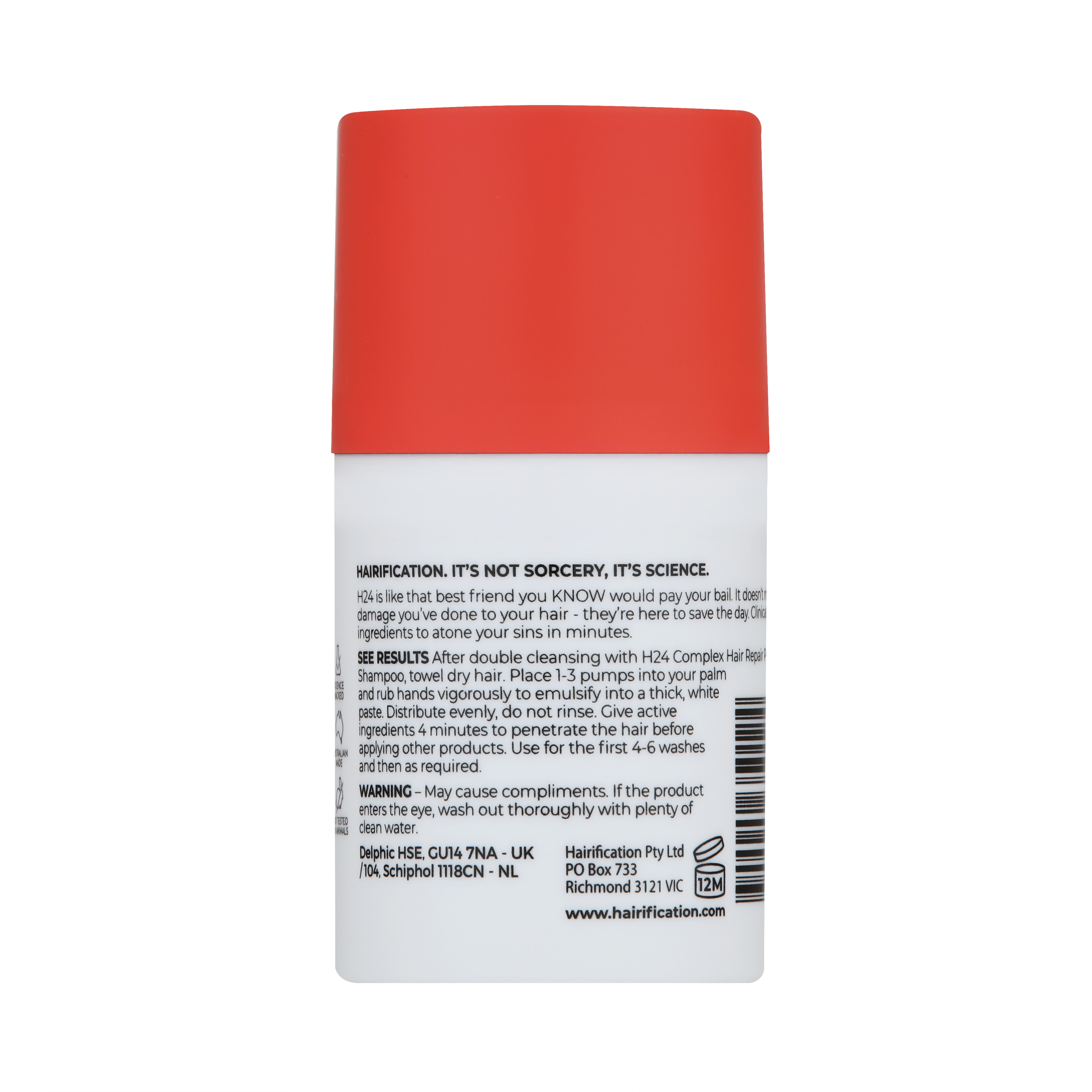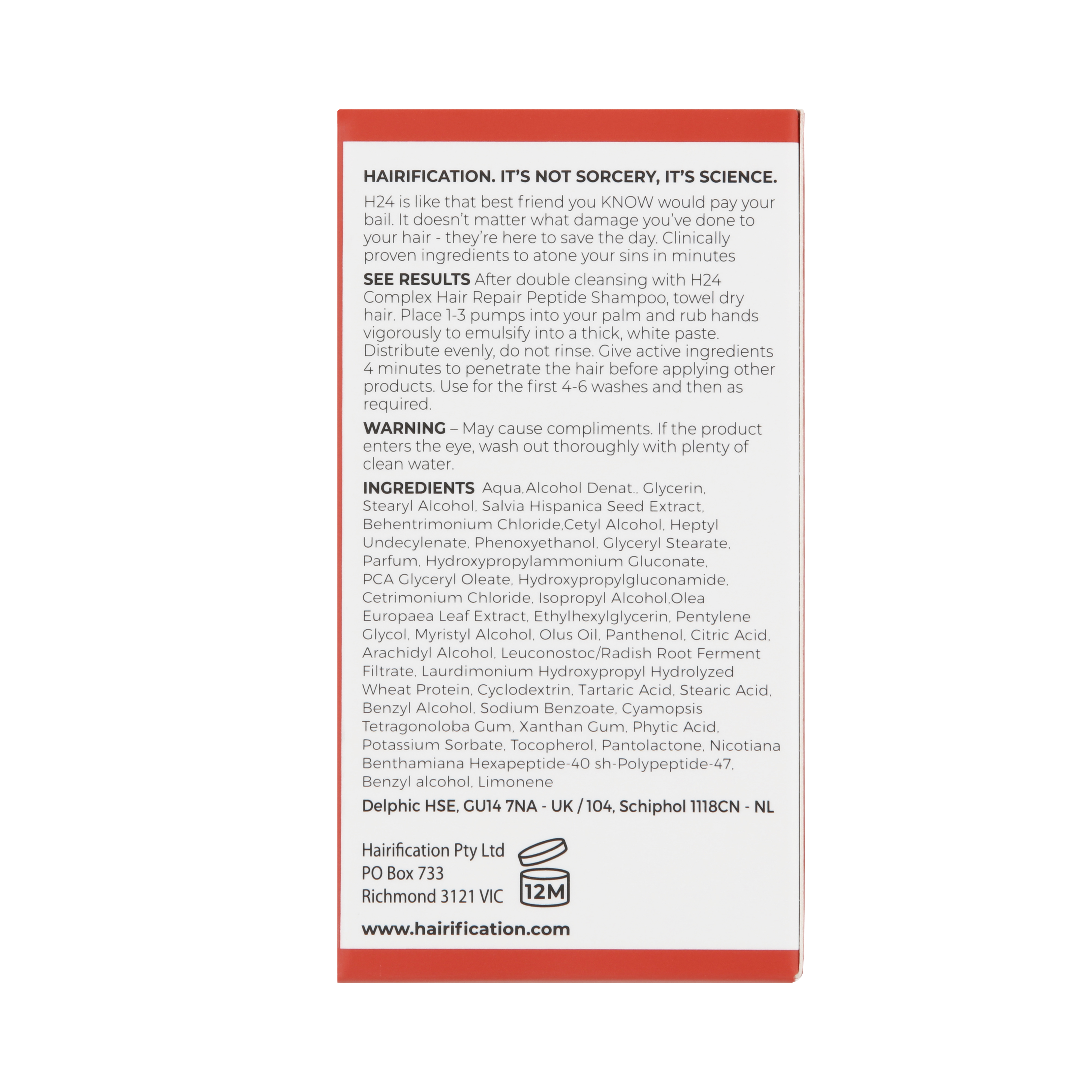 H24 Complex Leave-In Repair Hair Mask er baseret på fire nøje udvalgte, proprietære ingredienser: