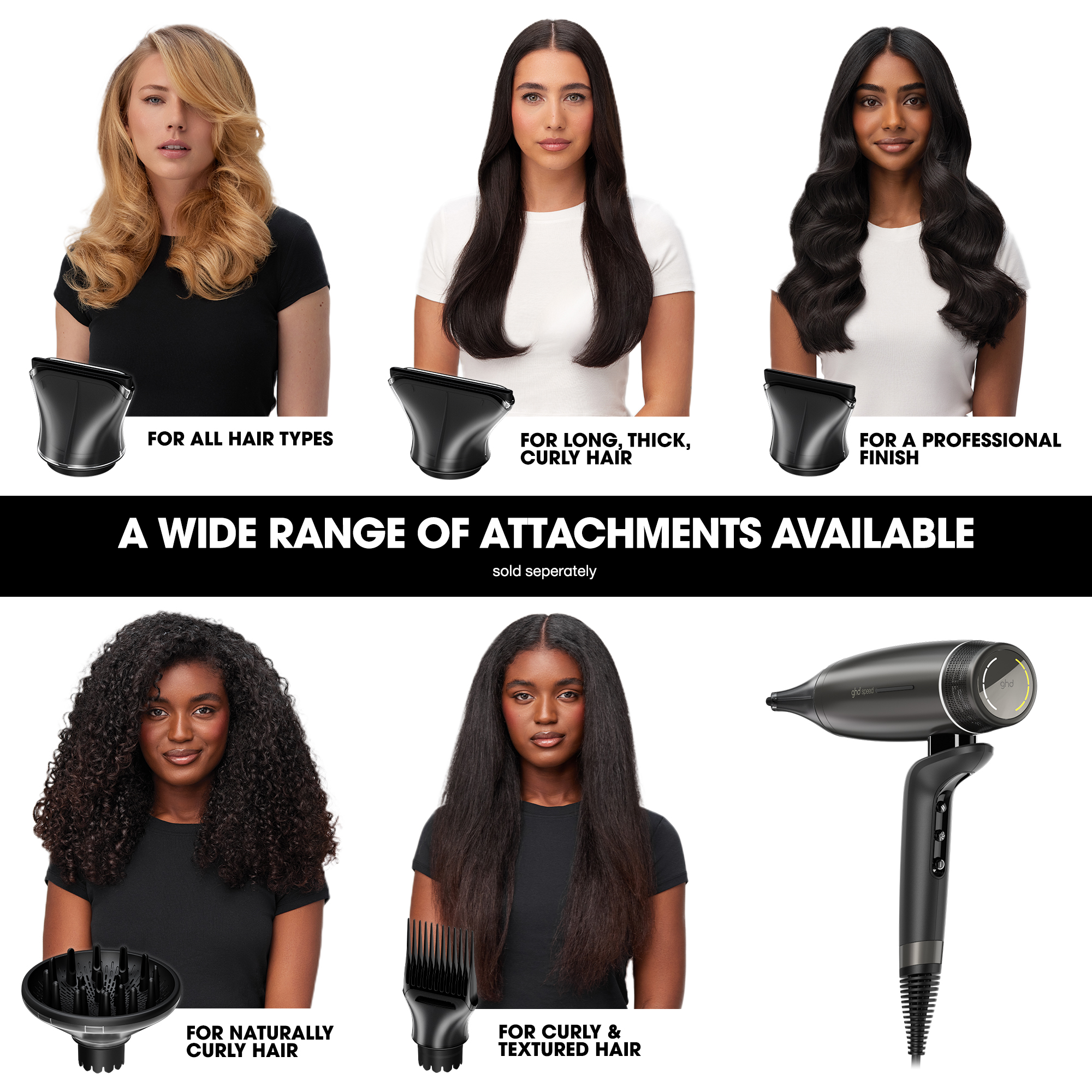 Forvandl din stylingrutine med ultrahurtig tørring og perfekte resultater i salonkvalitet. Takket være den helt nye og meget hurtige motor, der roterer med 118.000 omdr./min., leverer ghd Speed en højtryksluftstrøm på op til 174 km/t, som tørrer håret hurtigt fra rod til spids med den perfekte balance mellem hastighed, kraft og kontrol. Udviklet af vores ingeniører i samarbejde med ghd's professionelle stylister. Over 4000 forbrugere har deltaget i test og udvikling af ghd Speed. Konstrueret til at levere uovertruffen hurtig tørring – ghd's eksperter testede hundredvis af hårtørrere, og ikke én eneste var hurtigere end ghd Speed