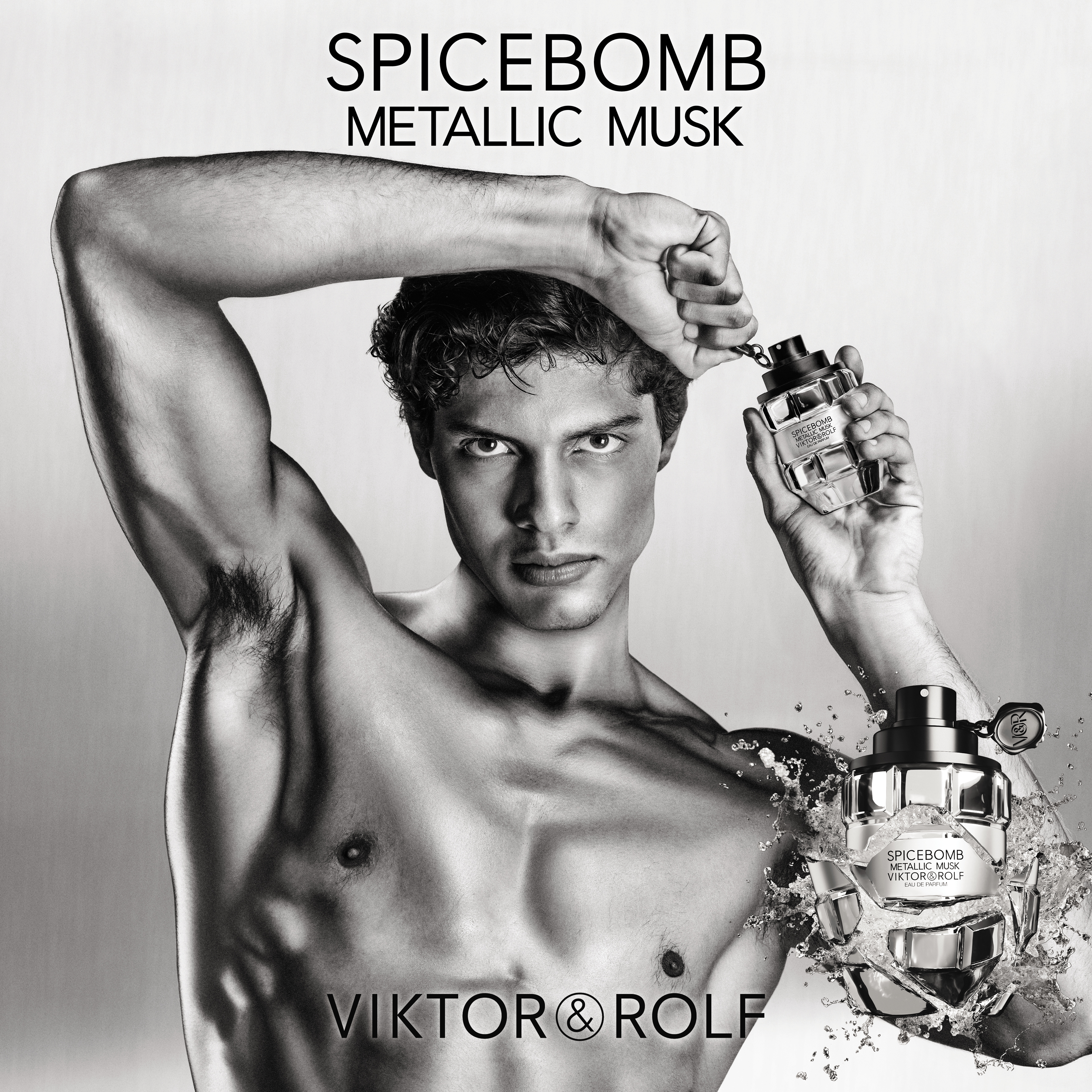 Spicebomb Metallic Musk præsenteres i den ikoniske granatflakon, nu i elegant krom, der reflekterer lyset som poleret metal. Designet spejler selve duften: dristig, ren og uforglemmelig.