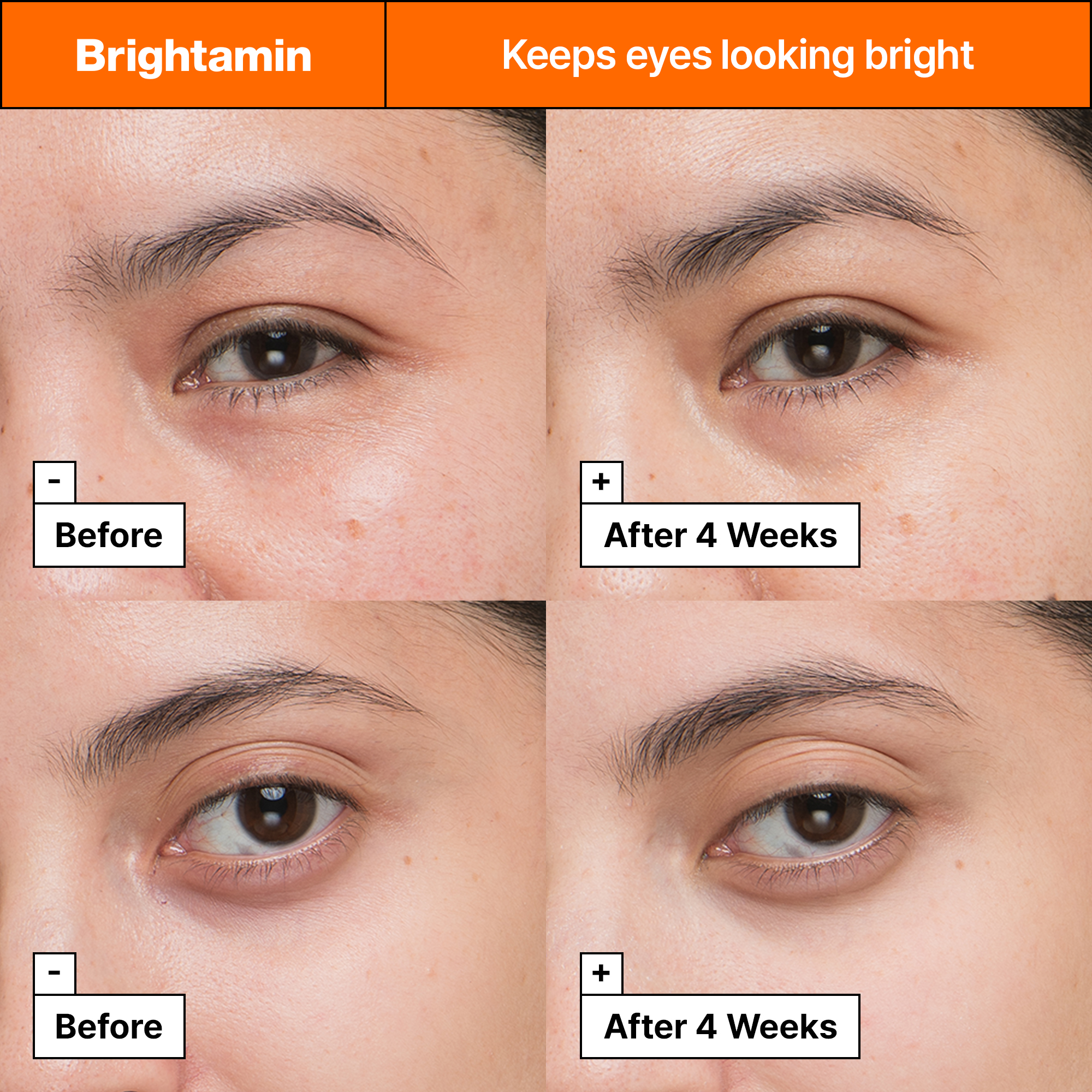 Brightamin Brightening Eye Serum Stick er en dobbelt-serumstift med en levende orange kerne og en ring beriget med glød-givende C-vitamin og det beskyttende E-vitamin. Brightamin Brightening Eye Serum Stick er rettet mod hele øjenområdet og kan nemt stryges på. Serummet er beriget med 20% C-vitamin, som øger glød og lysner huden, mens antioxidanten E-vitamin hjælper med at beskytte huden. Brug den under makeup eller tag den med i lommen for at opfriske på farten. Velegnet til følsom hud og det sarte øjenområde. Testet af øjenlæger.