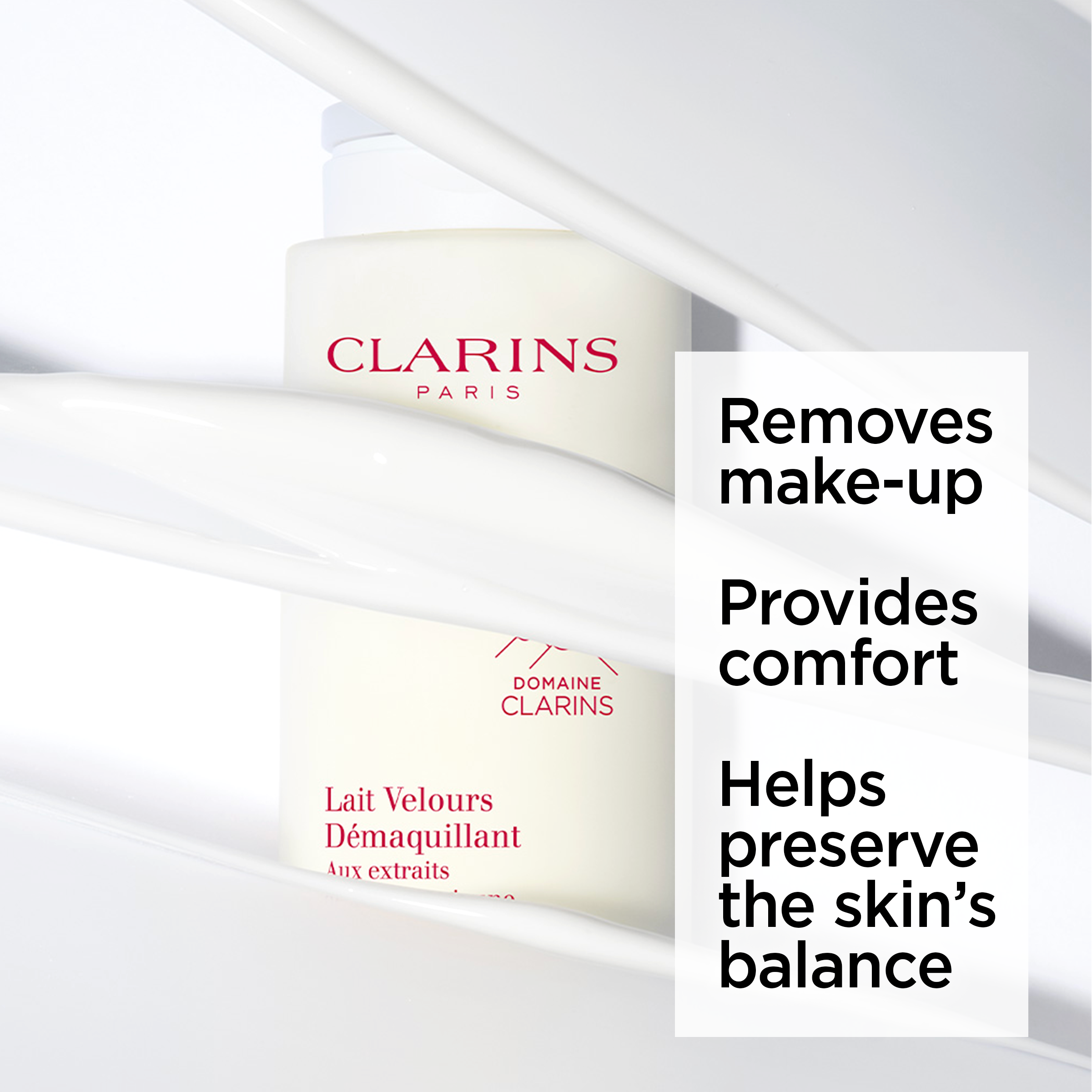 Clarins Cleansing Milk har en silkeagtig og behagelig mælkeagtig tekstur, der passer til alle hudtyper.