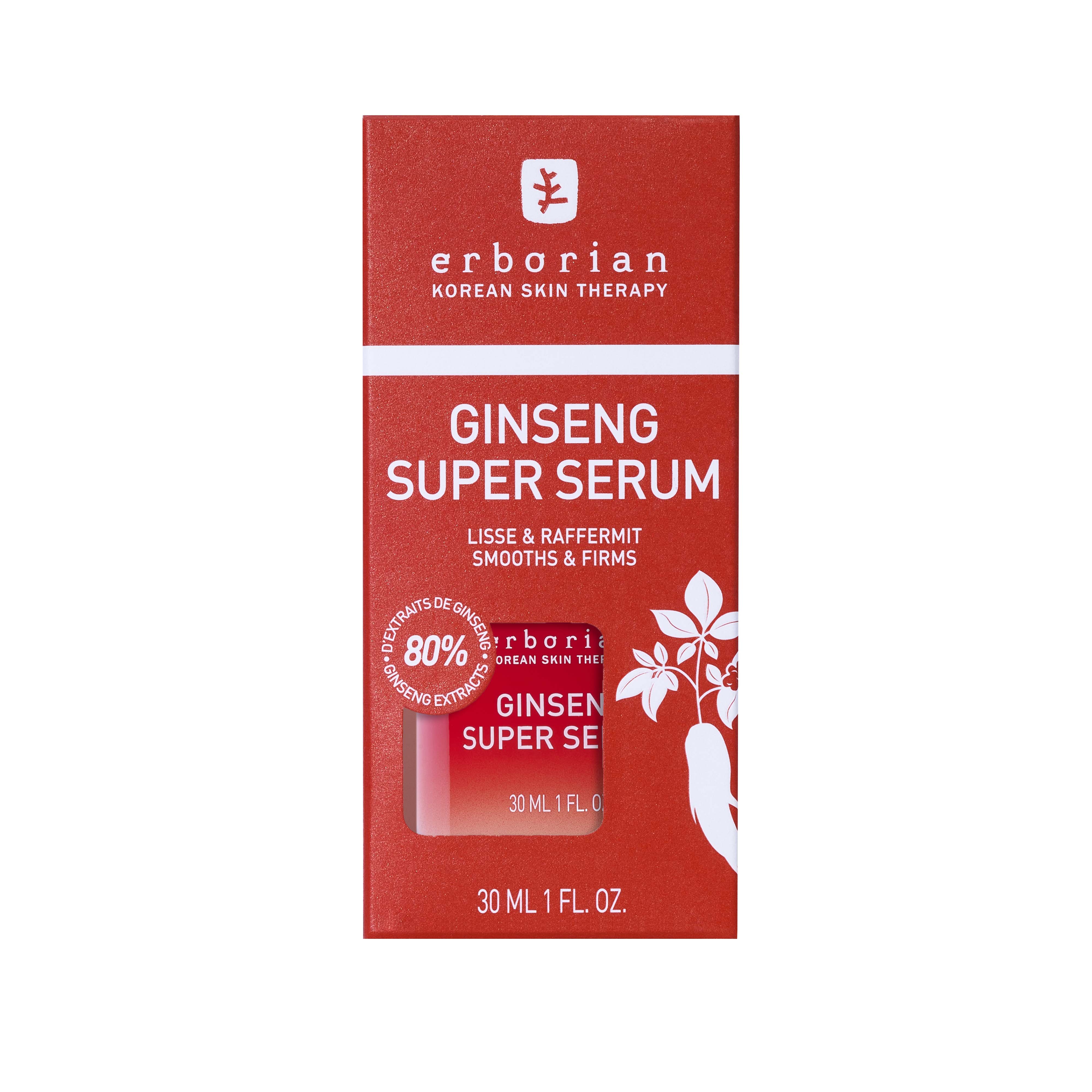 Ginseng Super Serum er et anti-aging serum, der reducerer forekomsten af rynker og fine linjer takket være dets udglattende og opstrammende virkninger, hvilket efterlader huden glattere og fastere.