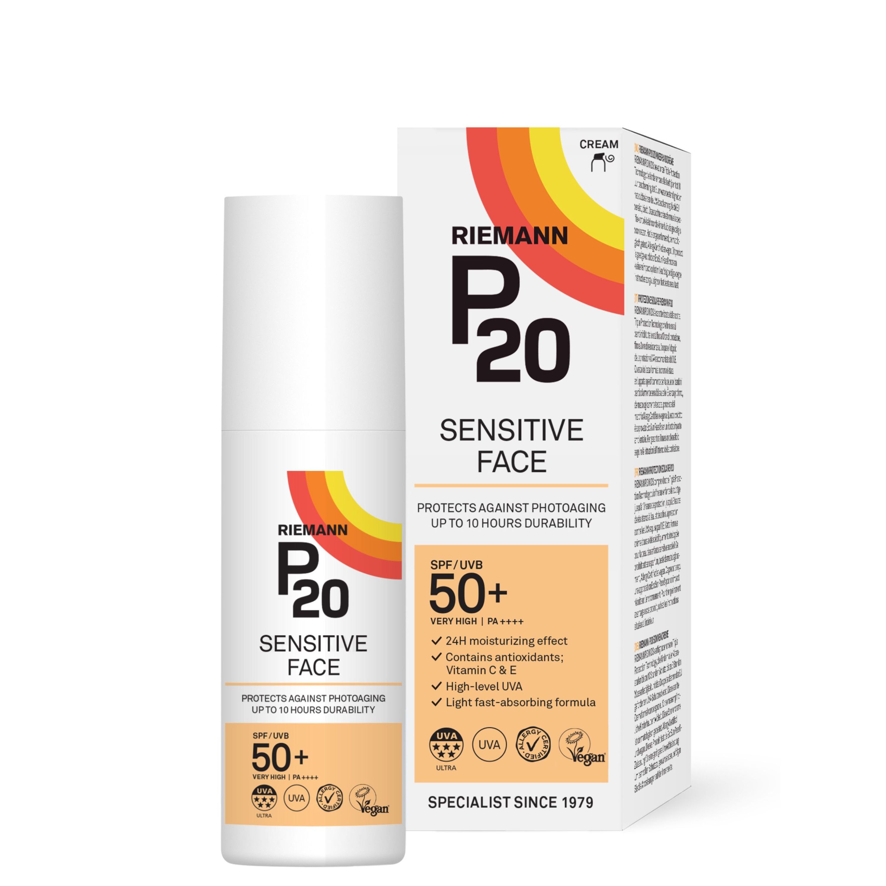 P20 Reimanns Sensitiv Face Solcreme er den ideelle løsning for dig, der ønsker effektiv solbeskyttelse uden at gå på kompromis med din hudpleje. Med en imponerende SPF 50+ tilbyder denne solcreme en stærk barriere mod både UVB- og UVA-stråler, hvilket hjælper med at beskytte din hud mod solens skadelige virkninger. En af de mest bemærkelsesværdige egenskaber ved denne solcreme er dens holdbarhed, der giver op til 10 timers beskyttelse, så du kan nyde dine udendørs aktiviteter med ro i sindet.