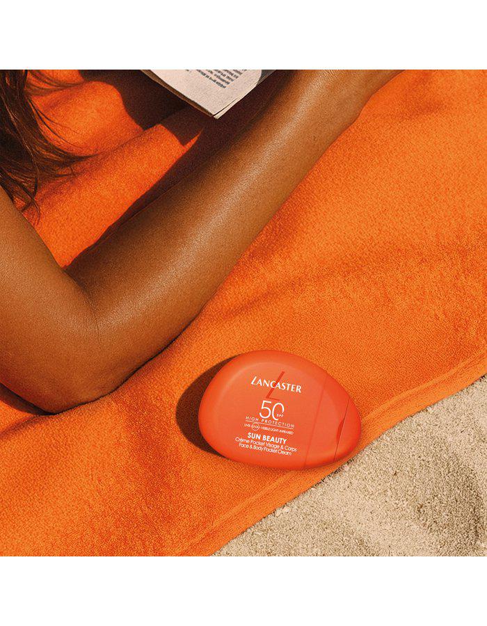 Sun Beauty Face & Body Pocket Cream SPF50 er en effektiv on-the-go solcreme, der giver bredspektret beskyttelse med en sensorisk og behagelig tekstur. Det kompakte og praktiske design gør den nem at have med sig, så du let kan påføre og genpåføre solbeskyttelse i løbet af dagen – perfekt til både hverdagsbrug og udendørsaktiviteter. Den sensoriske, ikke-fedtede og vand-/svedresistente formel glider let over huden og efterlader en usynlig, tør og behagelig finish. Passer til alle hudtyper og kan bruges både i ansigtet og på kroppen. Huden føles blød, smidig, intensivt fugtet og beskyttet mod tørhed. Den lette solduft giver en sommerlig og sanselig oplevelse. Med Full Light Technology™ opnår huden 10x bredere beskyttelse mod hele solens spektrum*: ikke kun UVA og UVB, men også synligt lys (inklusive blåt lys) og infrarød stråling. Formlen indeholder også Tan Activator Complex, som stimulerer hudens naturlige pigmenteringsproces og hjælper dig med at opnå en jævn og gylden farve på den halve tid i solen. Derudover hjælper Sun Repair System med at modvirke solskader på hudens DNA-niveau og forebygger nye skader i at udvikle sig.