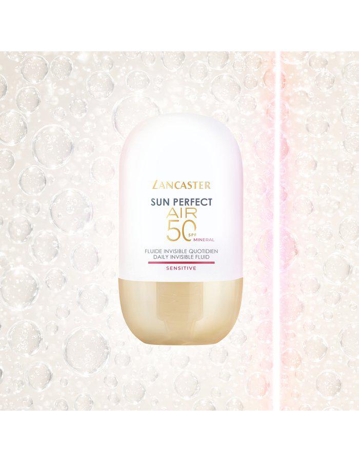 Sun Perfect Air Daily Invisible Fluid Sensitive SPF50 er en ultralet daglig solcreme, der kombinerer usynlig UV-beskyttelse med målrettet hudpleje – særligt udviklet til sensitiv hud. Den luftige SPF50-formel med 100 % mineralfiltre giver en vægtløs og usynlig beskyttelse, der lader huden ånde – helt uden hvid hinde. Med Full Light Technology™ beskyttes huden mod UVB, UVA, synligt lys (inklusive blåt lys) og infrarød stråling. AIR-O₂ Technology hjælper med at revitalisere hudens udseende, mens Supra-Calm Complex synligt reducerer rødme og beroliger sensitiv hud.
